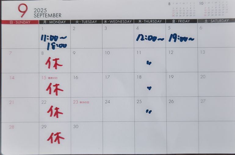 9月の休業日 | 赤羽にあるリラクゼーションサロンがお客様の新着の情報をお知らせしてまいります
